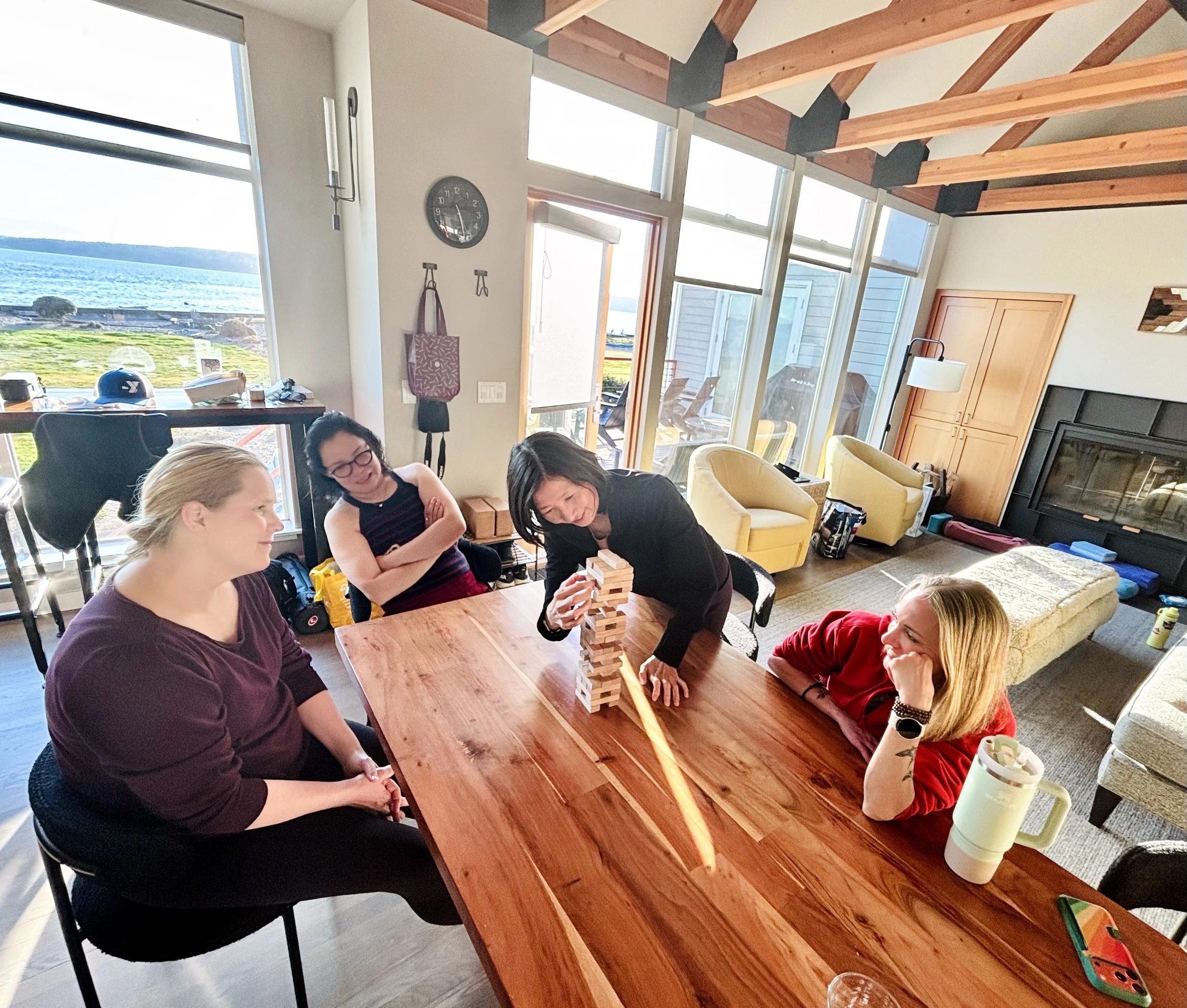 Our three‑day Camano Island getaway was filled with laughter, oceanside sunshine, and the kind of fun that comes easily when you’re surrounded by amazing people and salty air. We moved through slow‑flow mornings, meditation sessions, and quiet pockets of rest, balanced with nourishing meals, games, and plenty of time to simply be. From yoga on the sun‑soaked deck to surprise whale‑spotting moments and cozy bonfire nights, these photos capture the heart of our retreat.